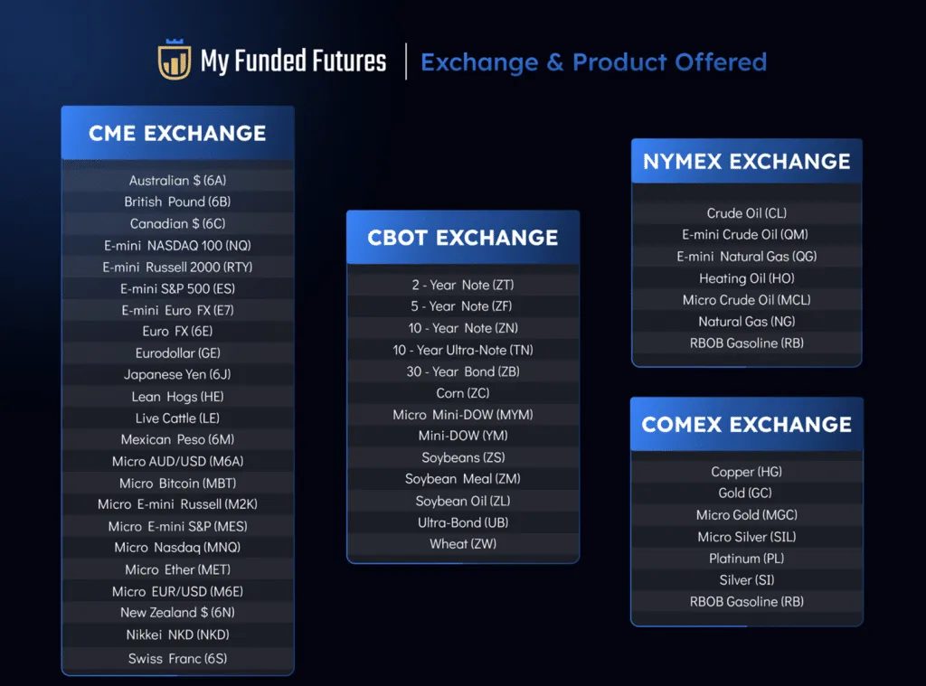 MyFundedFutures provides access to the following range of futures contracts: